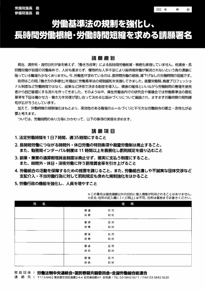 日頃より、当労働組合の活動にご理解とご支援を賜り、誠にありがとうございます。 現在、私たちは賃上げや労働環境などの改善を目指して重要な署名活動を支援しております。 皆様のご協力をいただきたく、署名をお願い申し上げます。皆様の声が大きな力となり、より良い労働環境を実現するための大きな一歩となります。 署名は以下の送付先までお送りください。送付先高知市江陽町1-12 2階江陽第二事務所よさこいユニオン どうぞ、ご支援いただけますようお願い申し上げます。